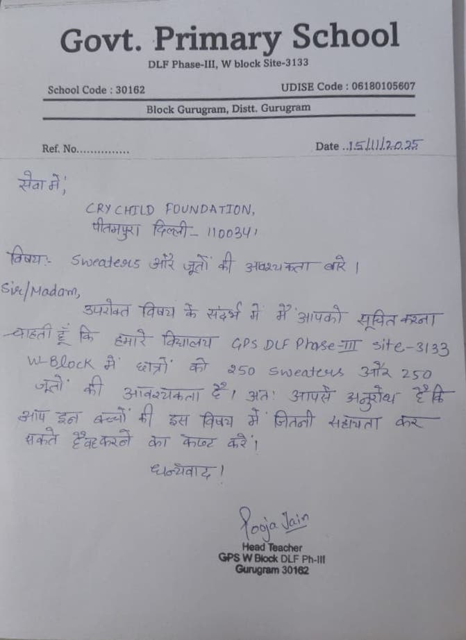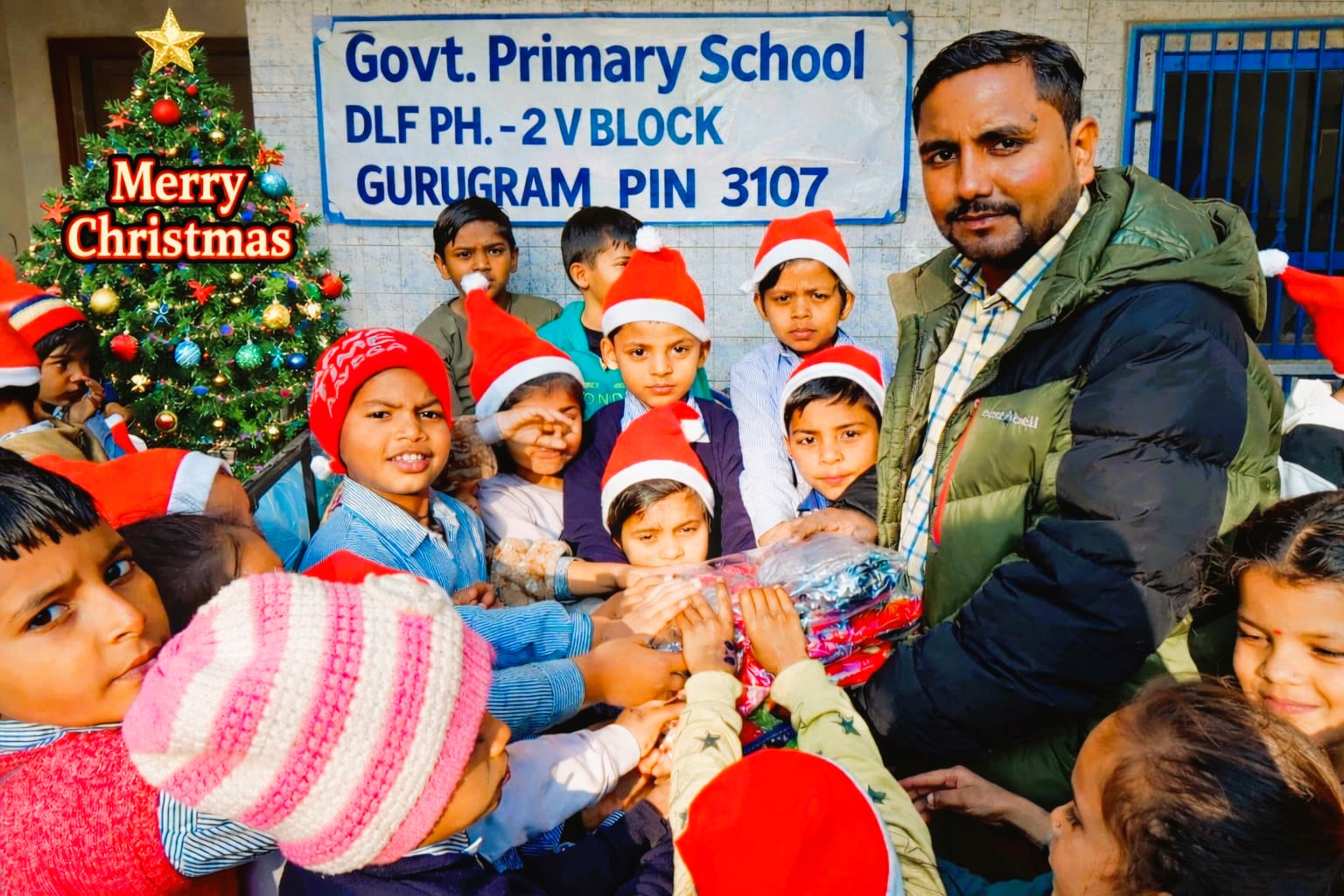 CRY CHILD FOUNDATION organized a heartwarming Merry Christmas Celebration at the Government Primary School, DLF Phase 1, Gurugram, with the aim of spreading joy, care, and hope among children during the festive season.